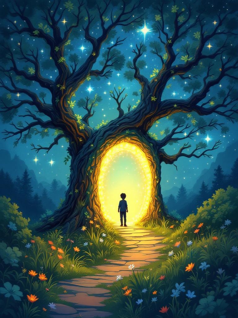 Theron, a curious boy, discovers a magical doorway in the moonlight. He embarks on an adventure to t